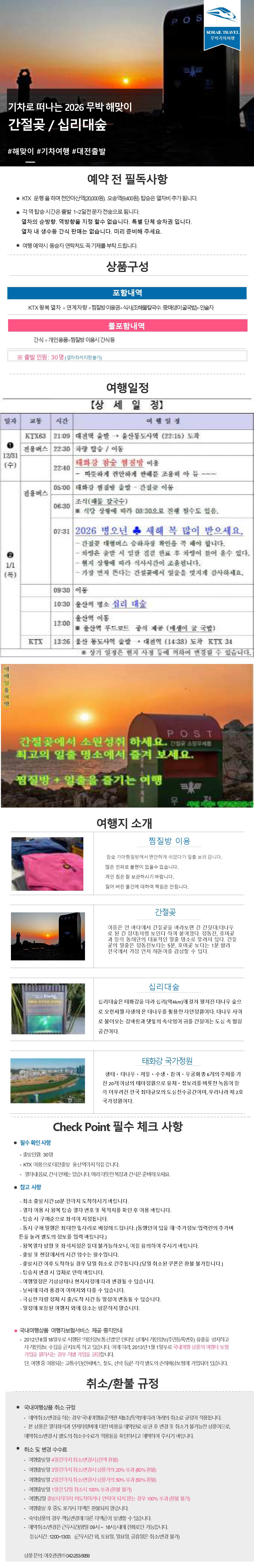 - 출발 8일전 및 당일 취소 환불 불가 입니다.